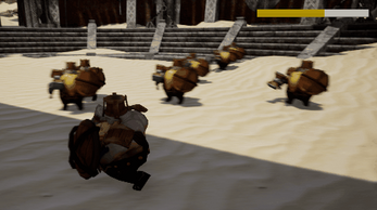 Enemies - There are 8 of them by default, each has 3 lives. They will gather around the player and try to stay at a safe distance. So they will move backward or forward if the player is getting too close or too far from them. Once every few seconds, a random enemy (sometimes two) will come forth to try and attack the player. They will walk sideway if they don't have a direct vision of the player or if they are back to a wall to avoid being blocked in a disadvantageous position. (Behaviour managed with a Behaviour Tree and an AI controller)